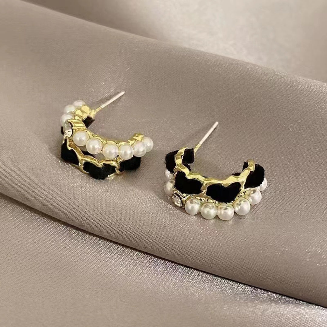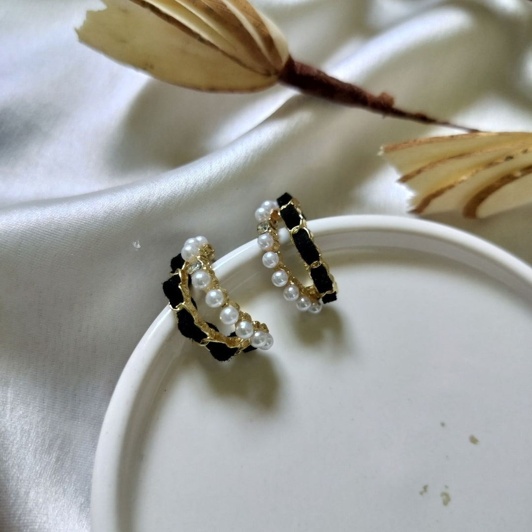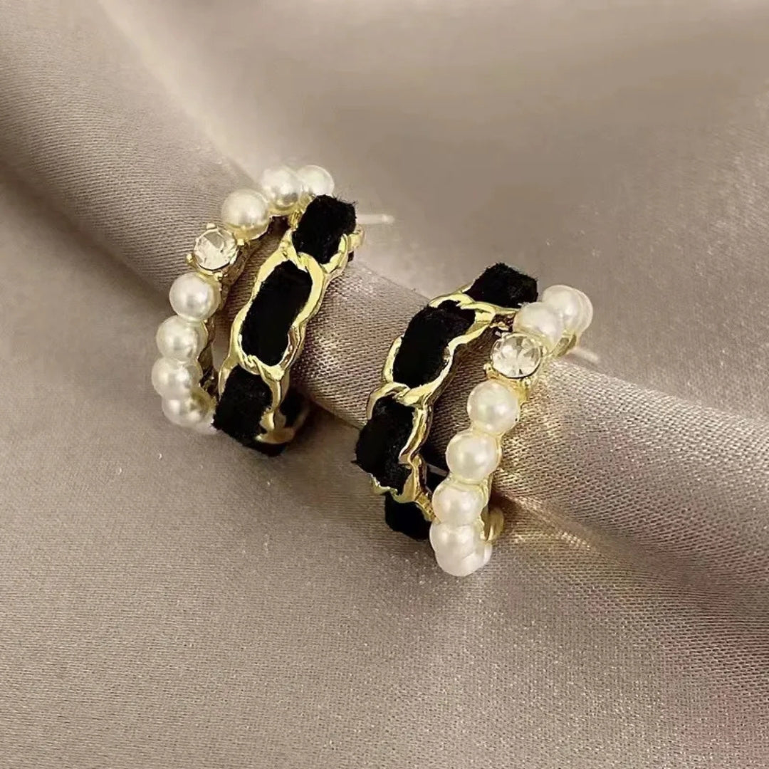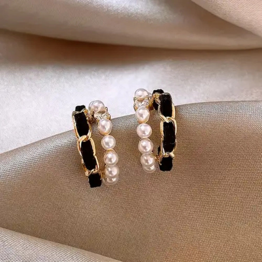 Czarno-białe kolczyki z perłą – eleganckie i nowoczesne połączenie kontrastowych kolorów z klasycznym akcentem perły. Idealne do stylizacji wieczorowych lub jako wyrafinowany dodatek na co dzień.