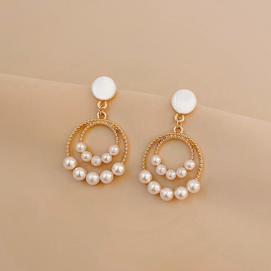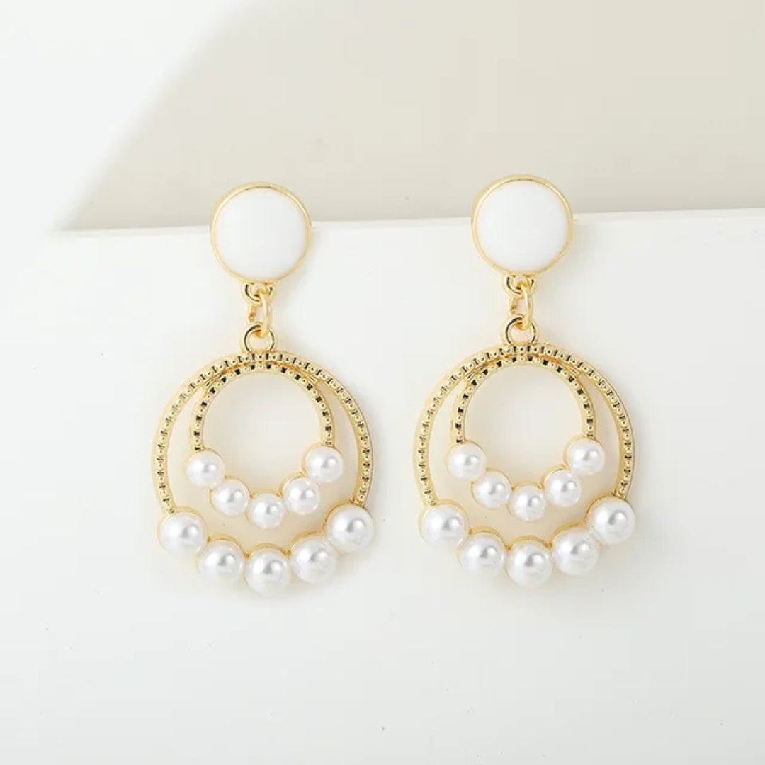 Pozłacane kolczyki z mosiądzu z podwójną obręczą i perłami słodkowodnymi – elegancki i nowoczesny dodatek, który łączy klasyczną perłową subtelność z modnym designem. Doskonałe na specjalne okazje lub jako wyrafinowany akcent do codziennego stroju.