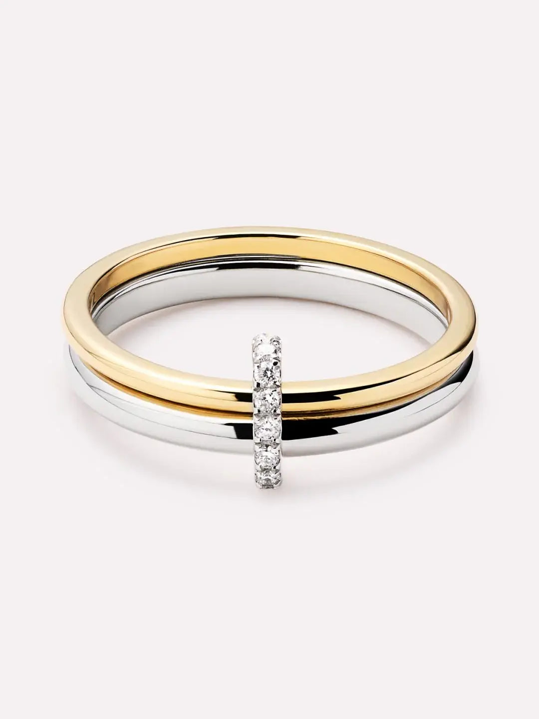 Dwukolorowy pierścionek z litego żółtego złota
