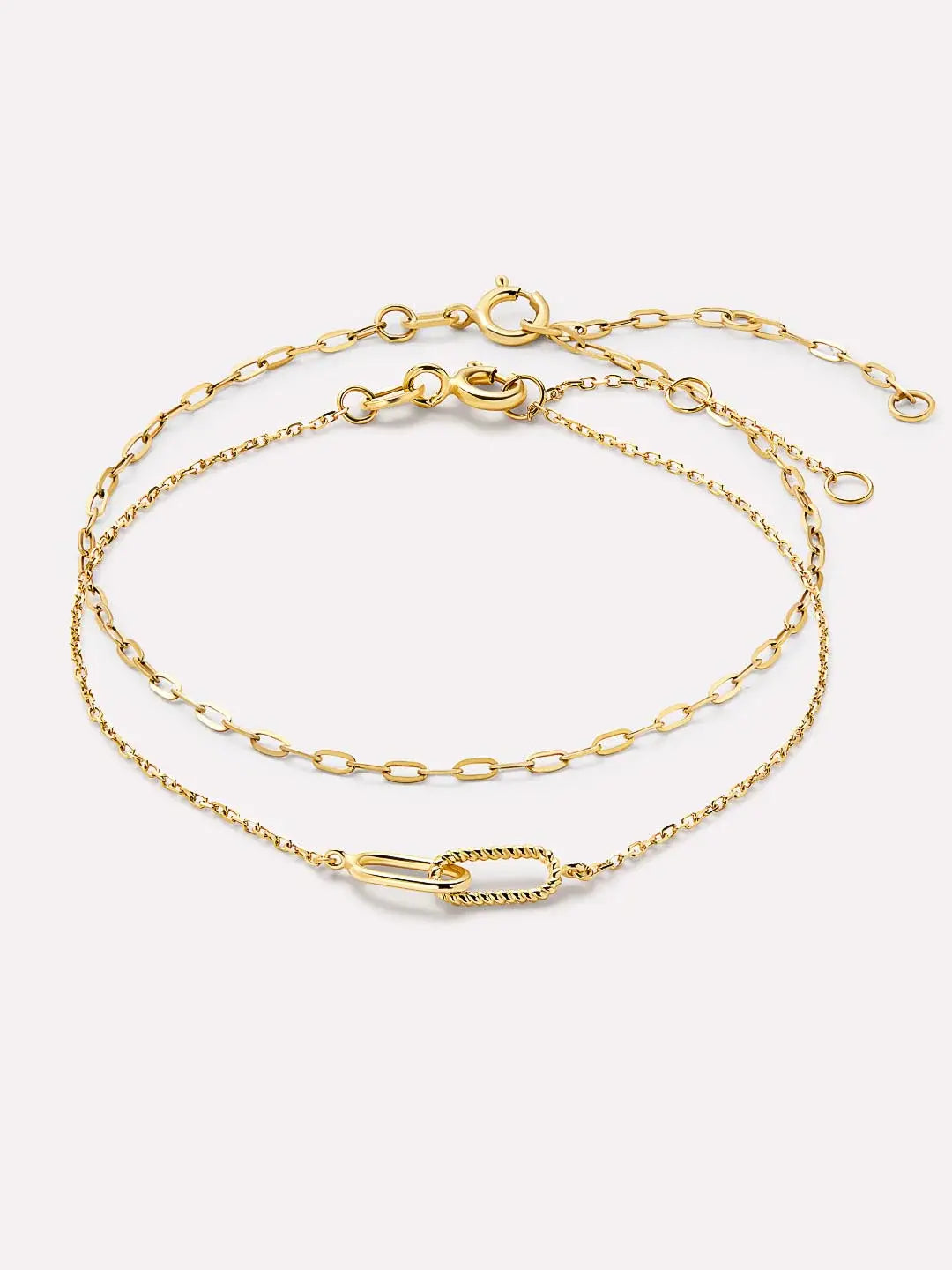 Zestaw wyróżnia się drobno plecionym splotem, który emanuje ponadczasową elegancją i dopasowuje się do każdej stylizacji – od casualowych po bardziej wyszukane. Dzięki uniwersalnemu charakterowi, bransoletki można nosić osobno lub łączyć warstwowo, tworząc efektowny akcent biżuteryjny.