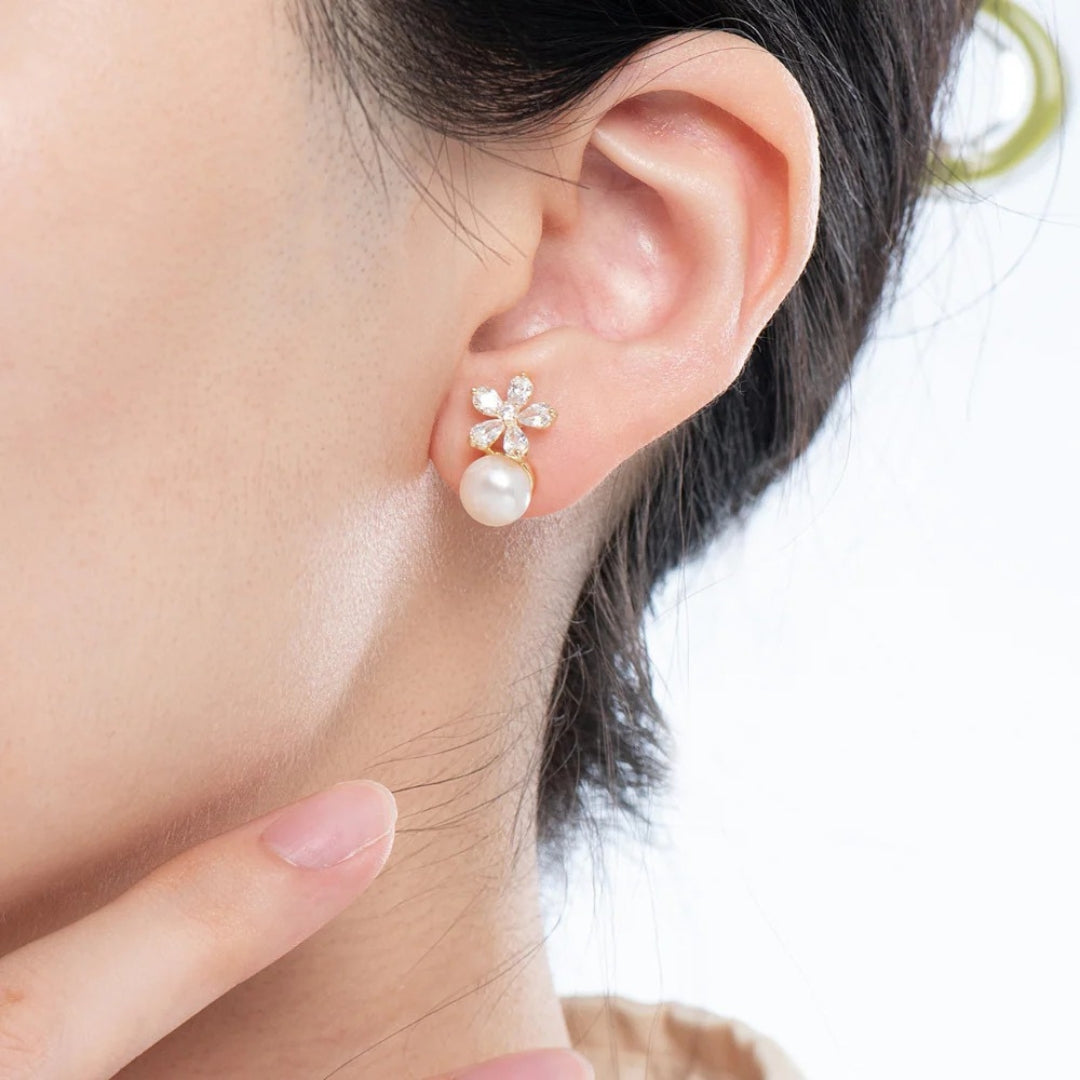 Kolczyki z perłą i kwiatowym sztyftem – eleganckie i kobiece, doskonałe na każdą okazję. Subtelne połączenie klasycznej perły z delikatnym motywem kwiatowym dodaje uroku i stylu każdej stylizacji.