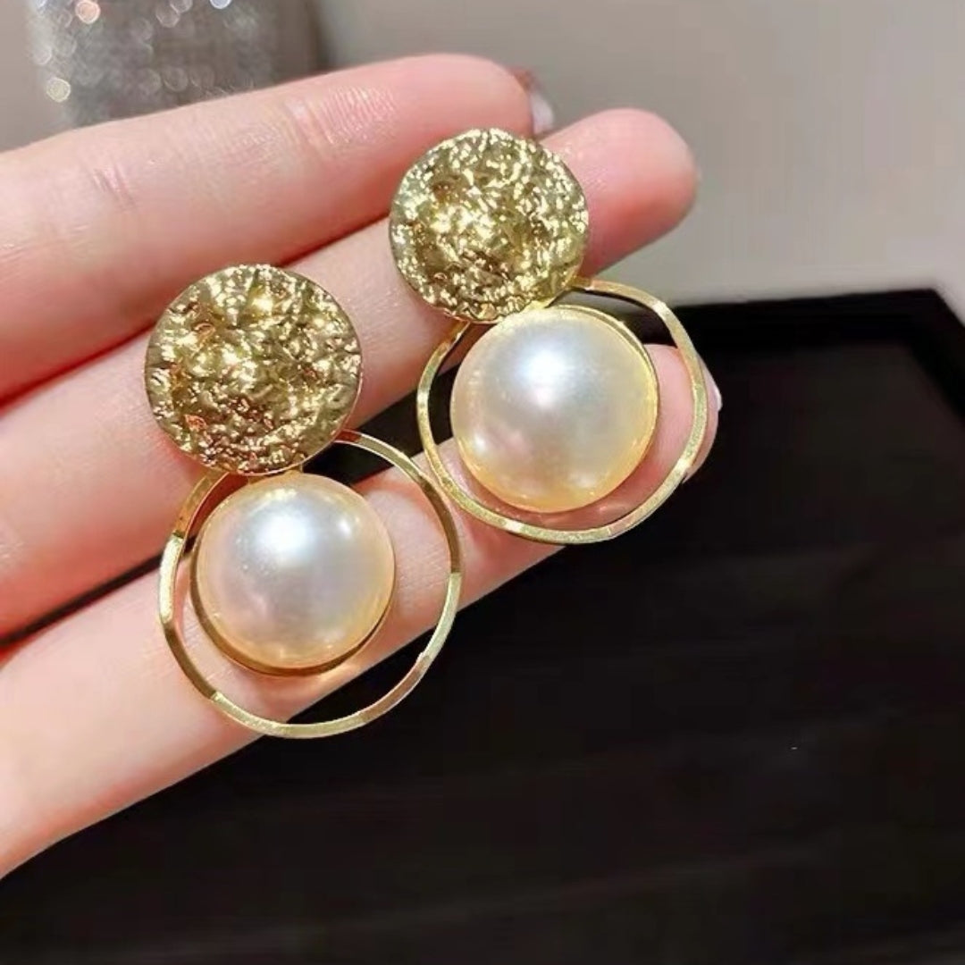 - Design: Złote kółka z perłowym akcentem