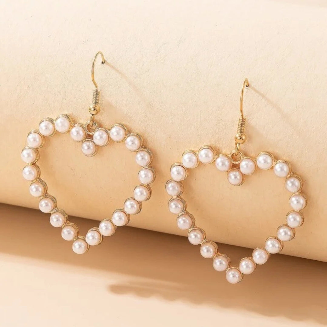 Kolczyki w kształcie serca z małymi perełkami na obwodzie – romantyczny i elegancki dodatek, który podkreśli Twoją kobiecość i styl. Doskonałe na co dzień lub na wyjątkowe okazje, dodając delikatnego blasku każdej stylizacji.