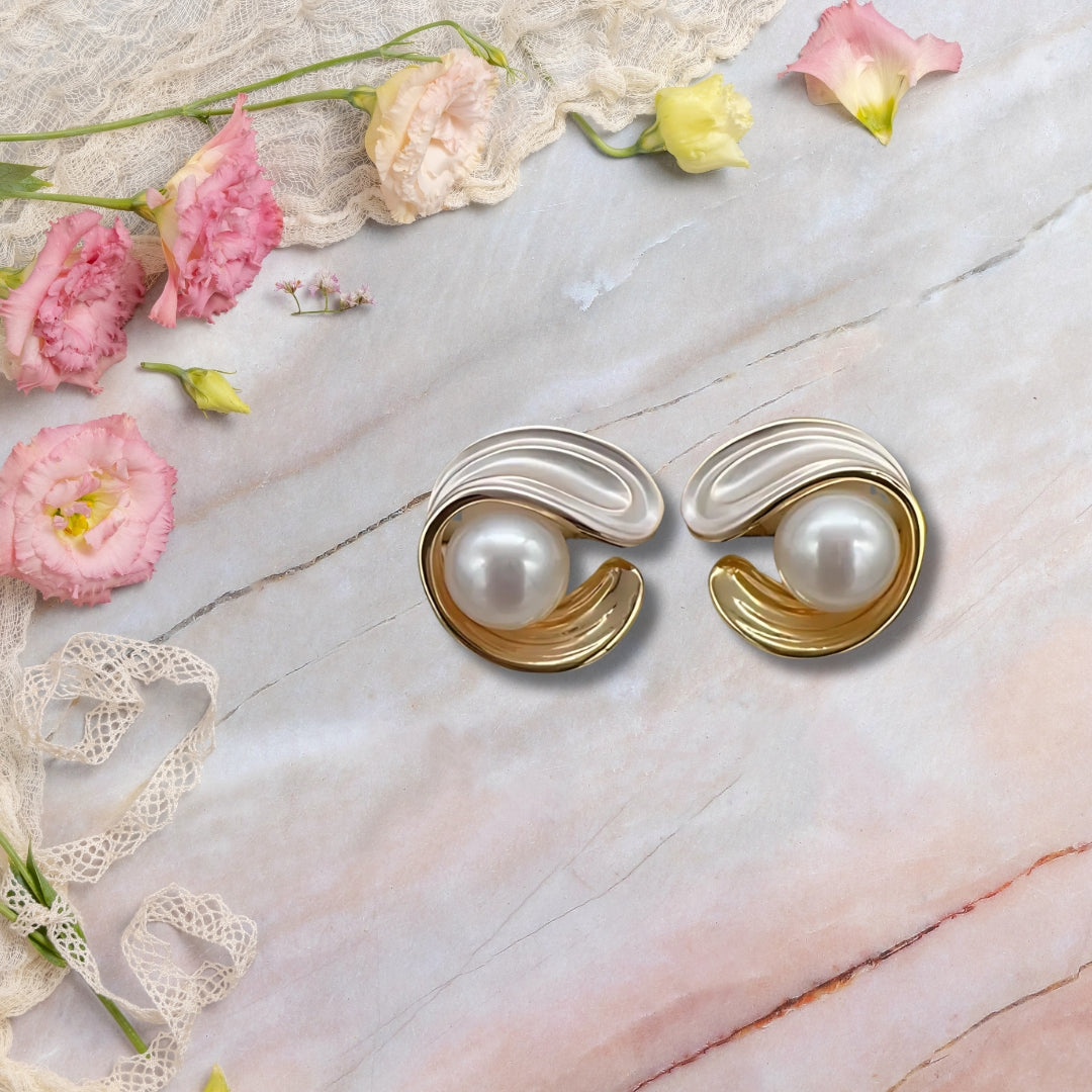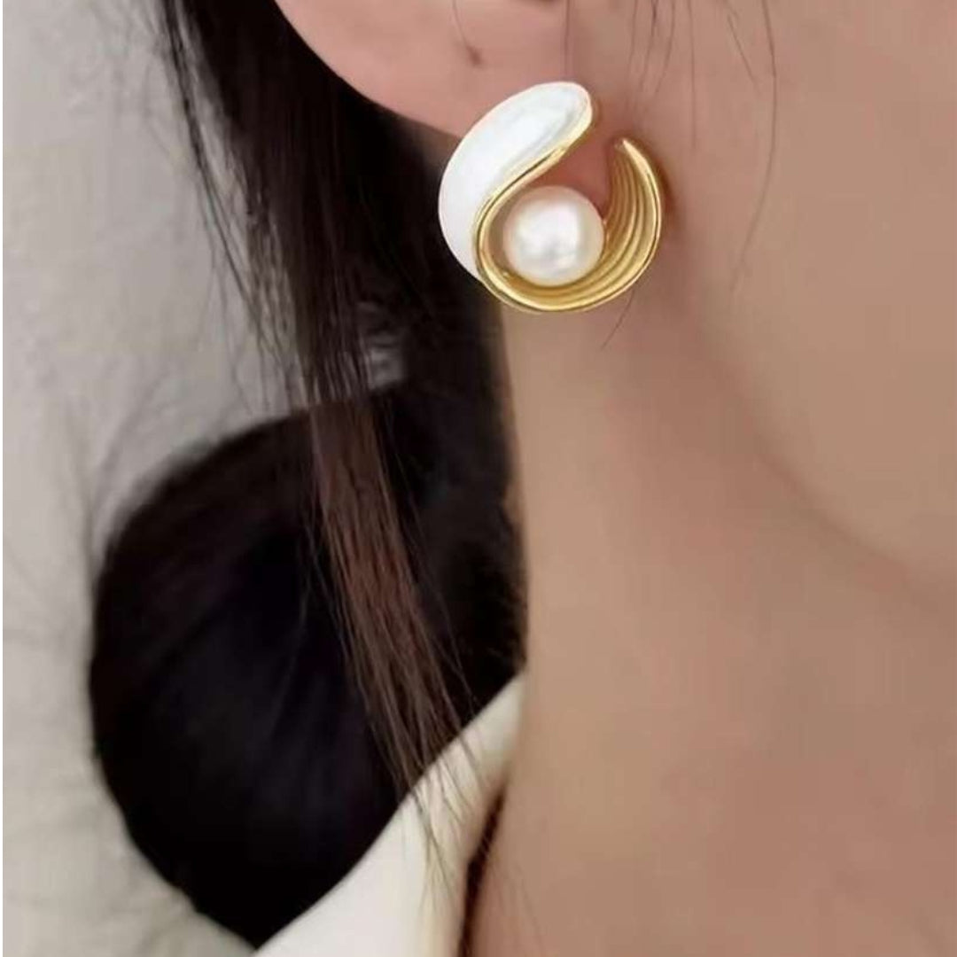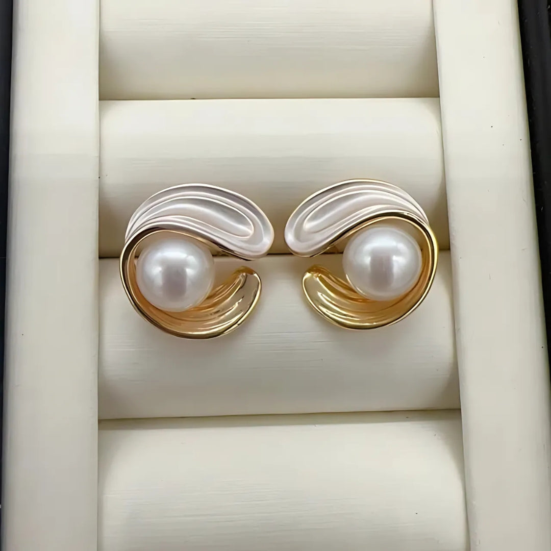 Te wyrafinowane kolczyki charakteryzują się wdzięcznym wzorem w kształcie spirali z błyszczącą perłą osadzoną w złotej krzywiznie, tworząc ponadczasową i elegancką estetykę. Ich wyrafinowany styl sprawia, że idealnie nadają się na formalne okazje, a jednocześnie są na tyle uniwersalne, że mogą wzbogacić codzienny wygląd odrobiną luksusu.
