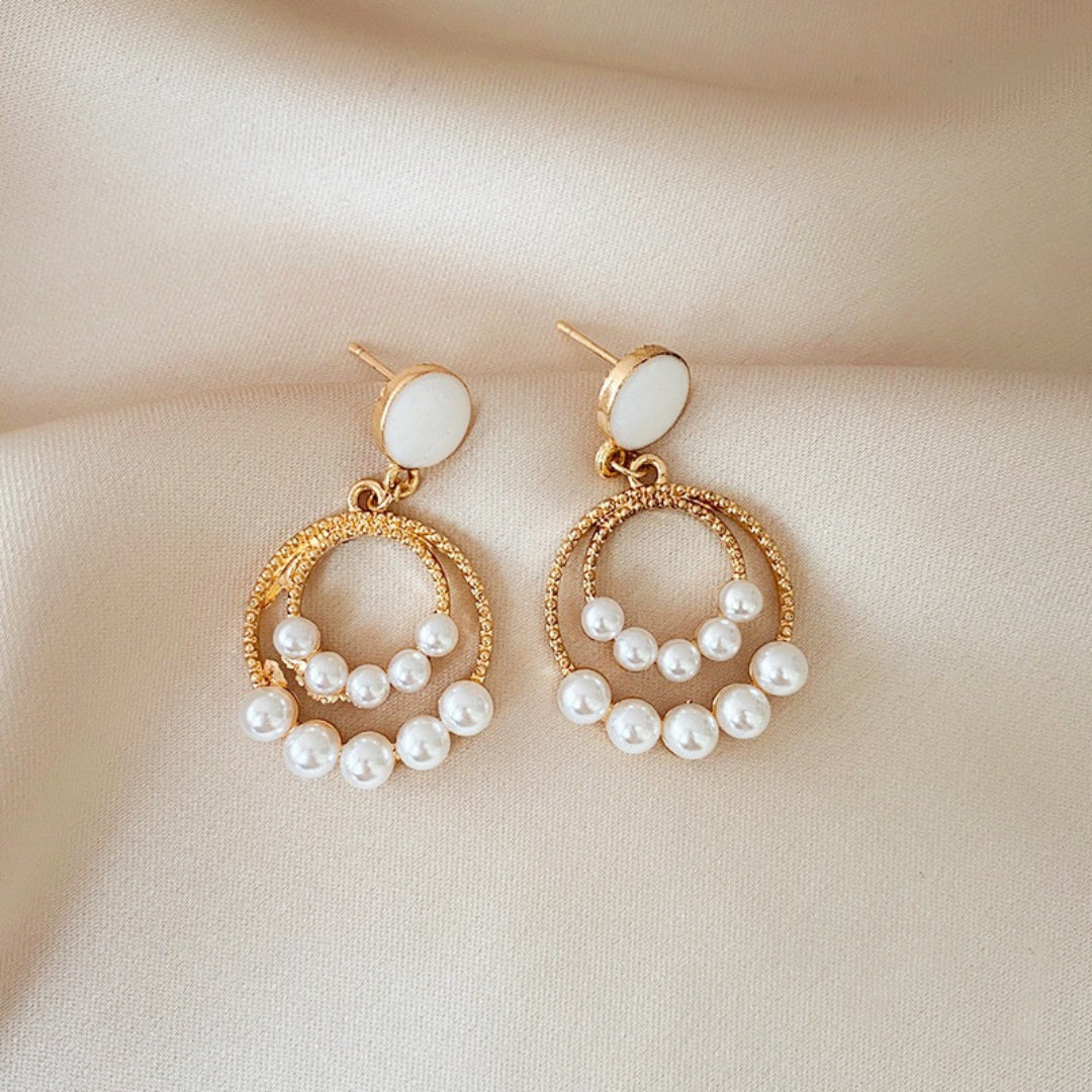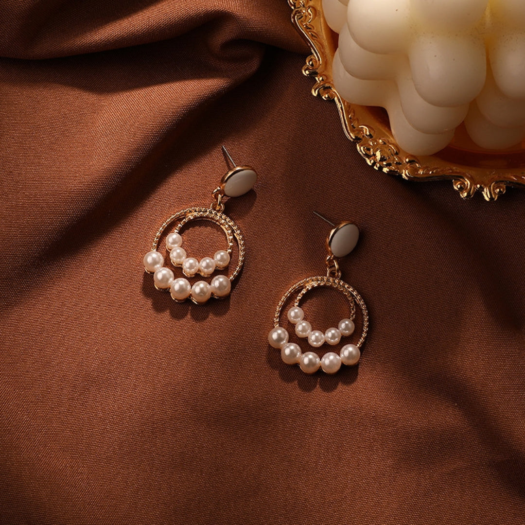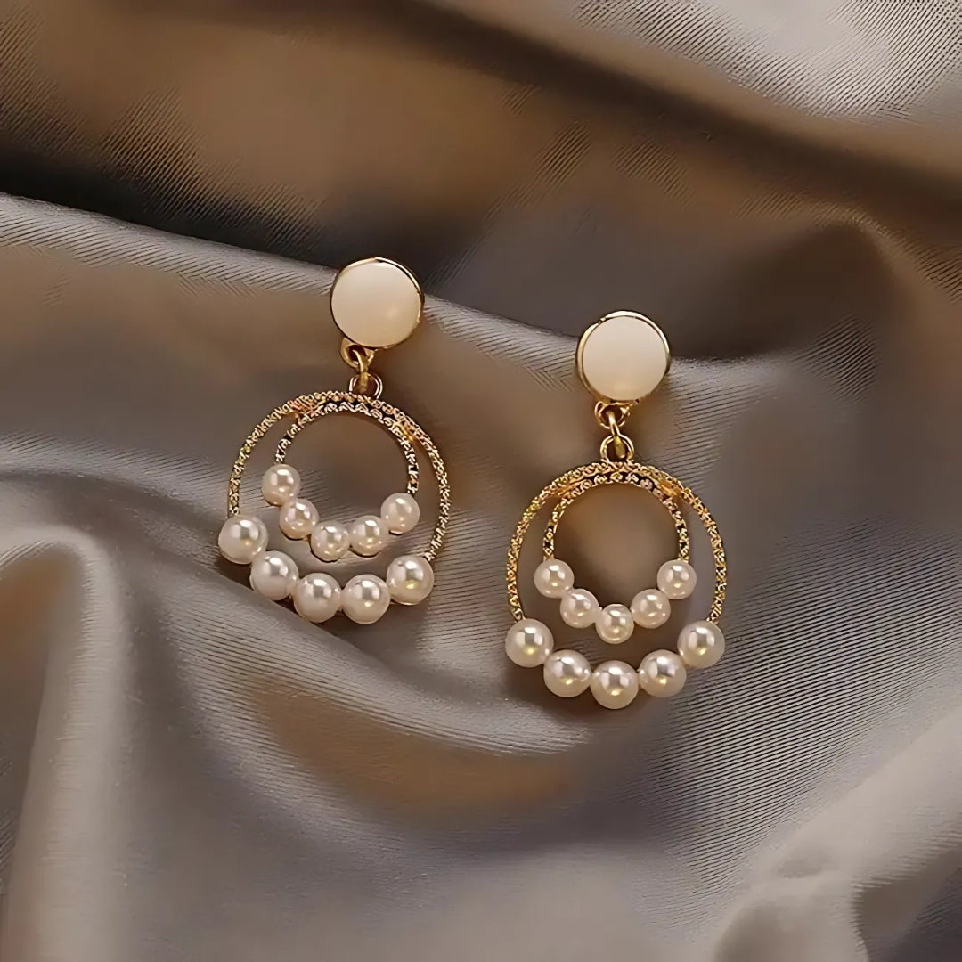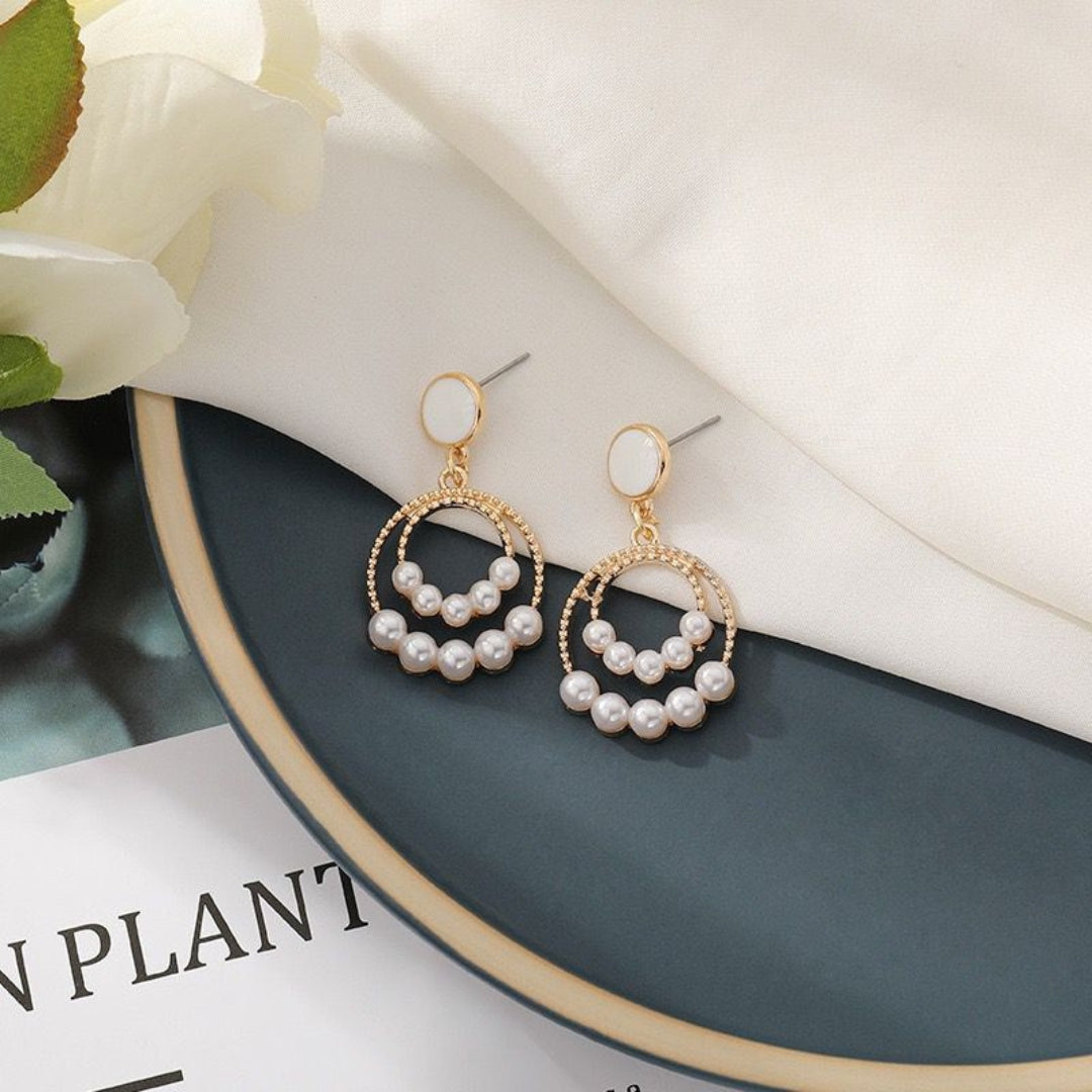 Te eleganckie kolczyki mają warstwowy, okrągły wzór ozdobiony delikatnymi perłami i subtelnym złotym wykończeniem, które nadaje im ponadczasowego wyrafinowania. Ich wdzięczna konstrukcja i klasyczny urok sprawiają, że są idealnym dodatkiem, który z łatwością doda elegancji zarówno formalnym, jak i codziennym stylizacjom.