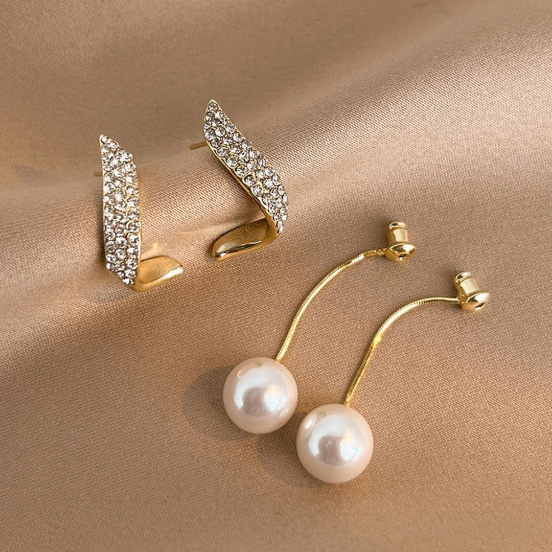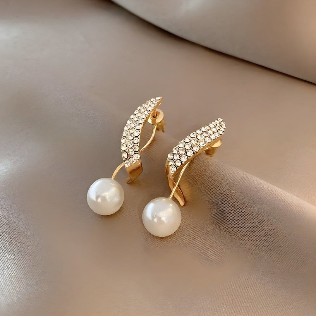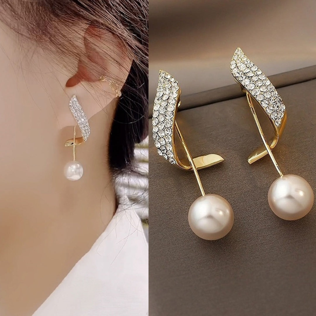 Pozłacane kolczyki w kształcie liścia z kryształkami i perłowymi koralikami – eleganckie kolczyki, które łączą w sobie blask złota, połysk kryształków i delikatność pereł. Idealne na wyjątkowe okazje lub jako stylowy dodatek do codziennej stylizacji.